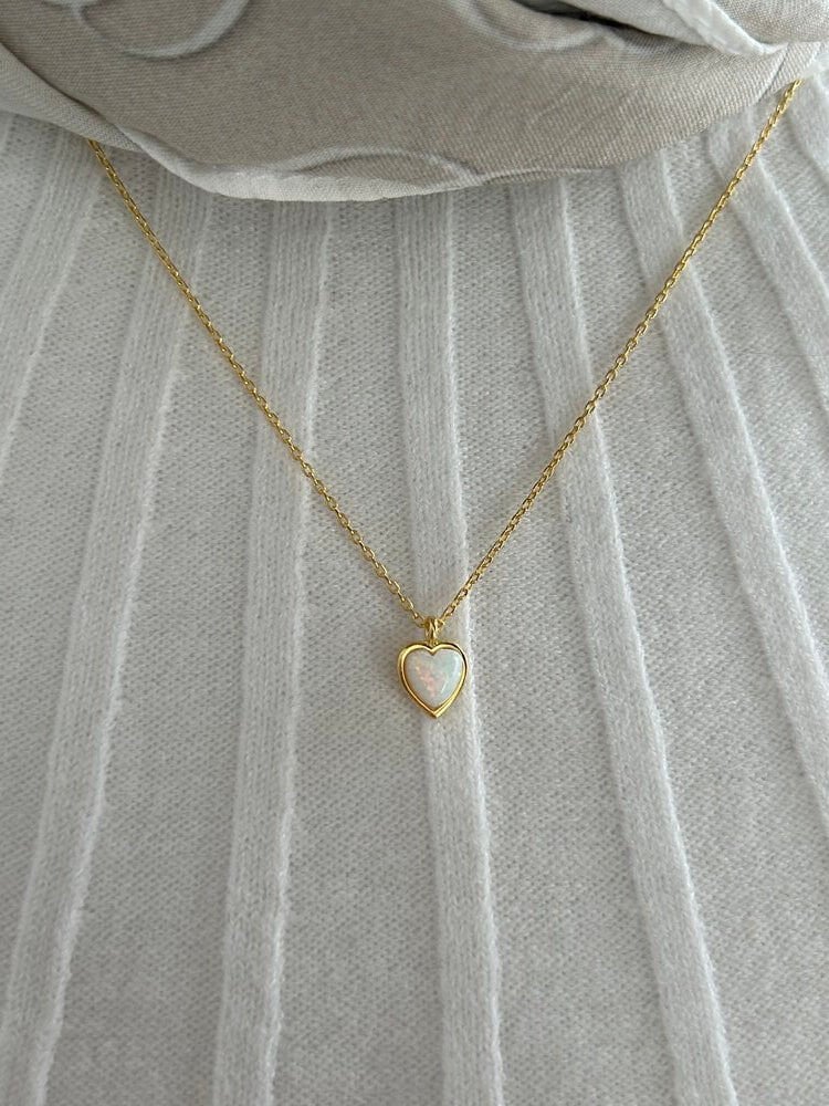 925 Ayar Gümüş Beyaz Opal Doğaltaş Kalp Kolye