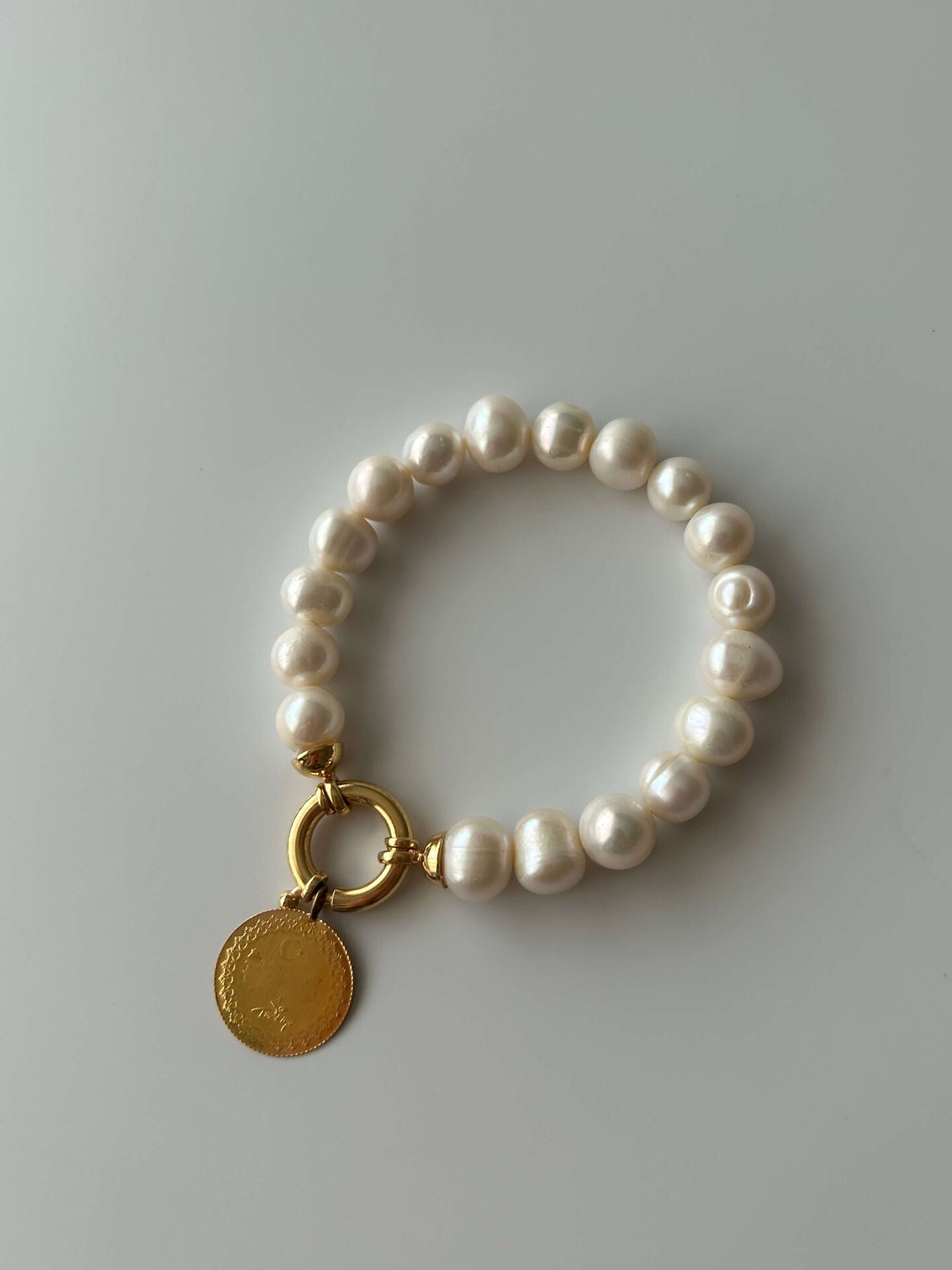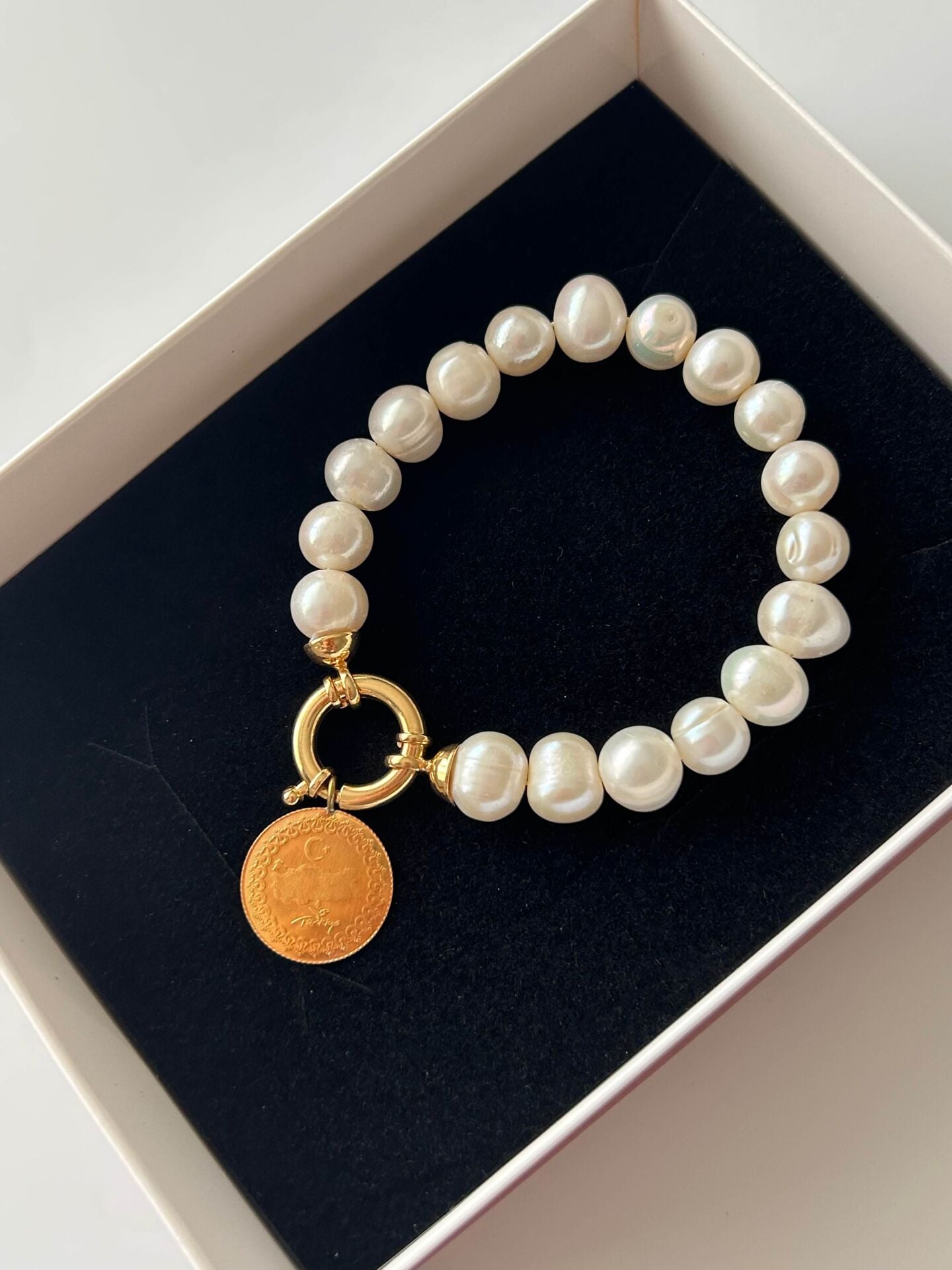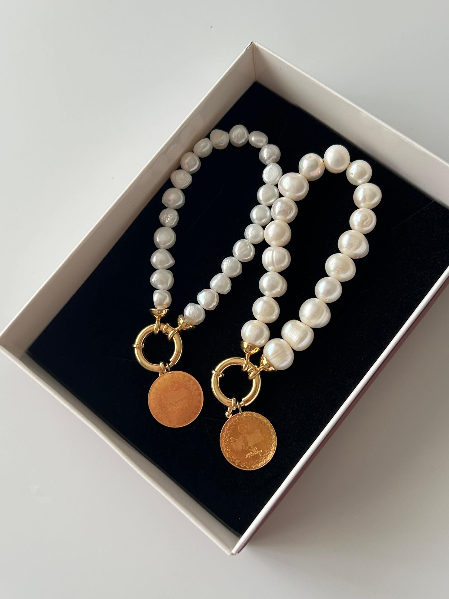 Ürünümüzde bulunan aparat materyali 925 ayar gümüş üzeri altın kaplama olup doğal inciden oluşur.Ürünümüz doğal inciden oluştuğu için boyut ve formlarında minik farklılıklar olabilir.Uzunluğu yaklaşık 16 cm + 2,5 cm aparat uzunluğu vardır.Dilediğiniz uzunluğu sipariş notunda belirtebilirsiniz.