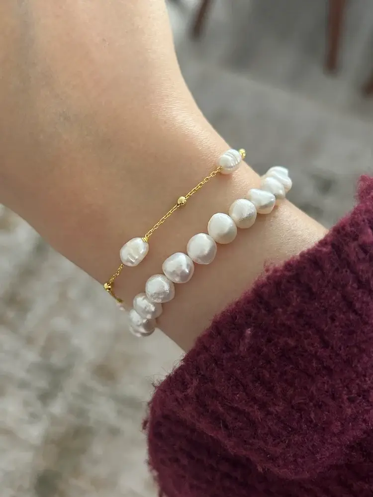 Ürünümüzün materyali 925 ayar gümüş olup doğal inciden oluşur.Ürünümüz doğal inciden oluştuğu için boyut ve formlarında minik farklılıklar olabilir.Uzunluğu 17,5 cm + 2,5 cm uzatma payı vardır.7-10 iş günü içinde kargolanır.