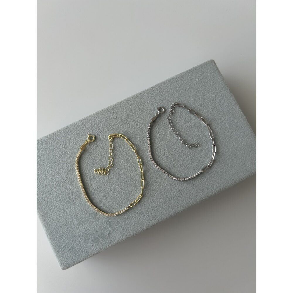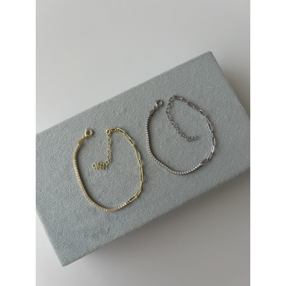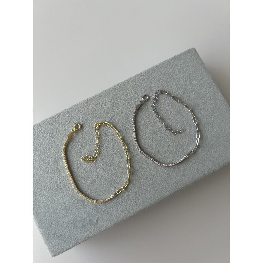 Ürünümüzün materyali 925 ayar gümüş üzeri 14 ayar altın kaplamadır.Uzunluğu 15 cm + 5 cm uzatma payı vardır.7-10 iş günü içinde kargolanır.