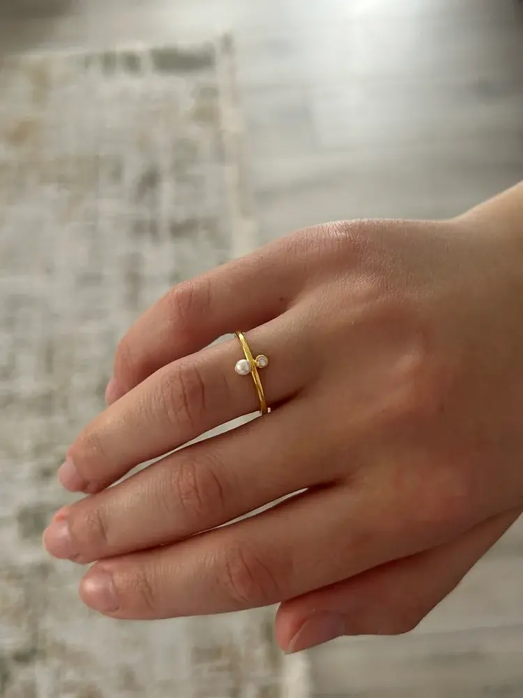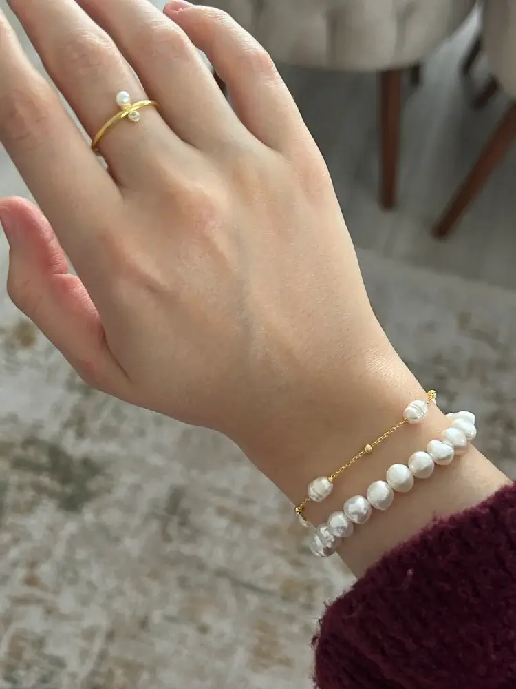Ürünümüzün materyali 925 ayar gümüş üzeri 14 ayar altın kaplama olup zirkon taş ve yapay inciden oluşur.Standart ölçüde ayarlanabilir formdadır.