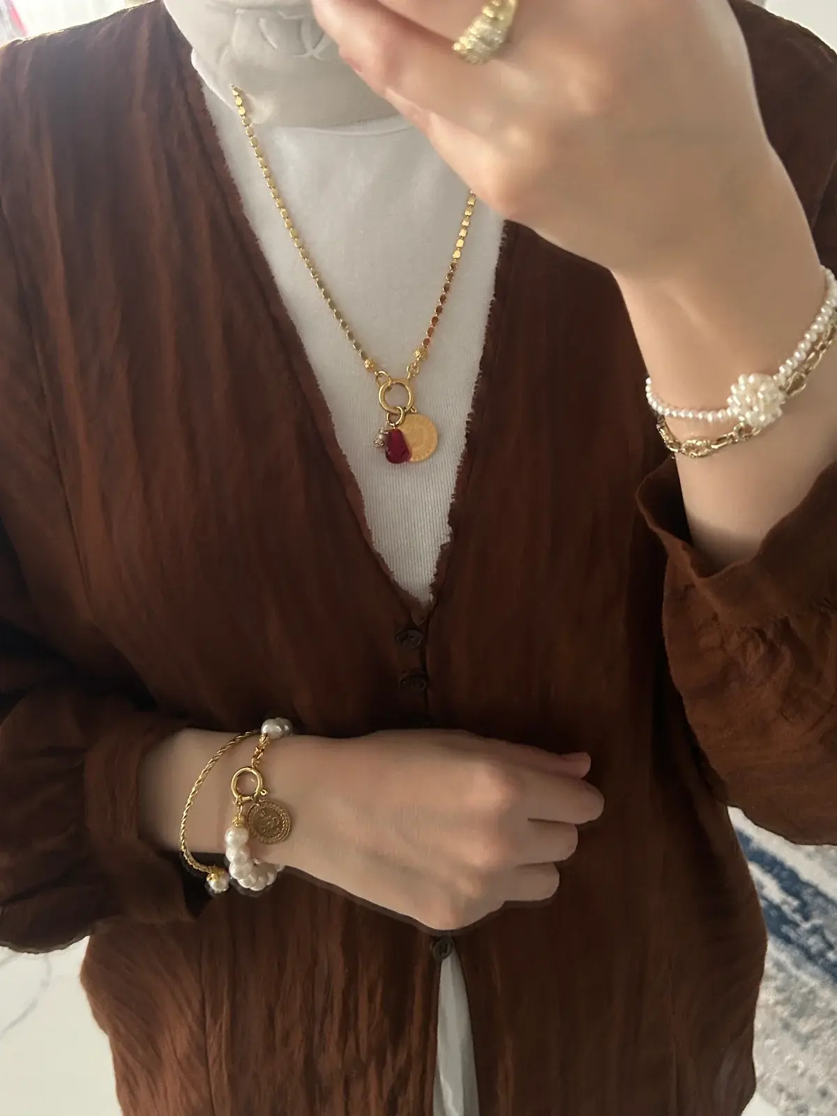 Ürünümüz pirinç üzeri altın kaplama olup doğal inciden oluşur.Ürünümüz doğal inciden oluştuğu için boyut ve formlarında minik farklılıklar olabilir.Uzunluğu yaklaşık 50 cm + 2 cm aparat uzunluğu vardır.