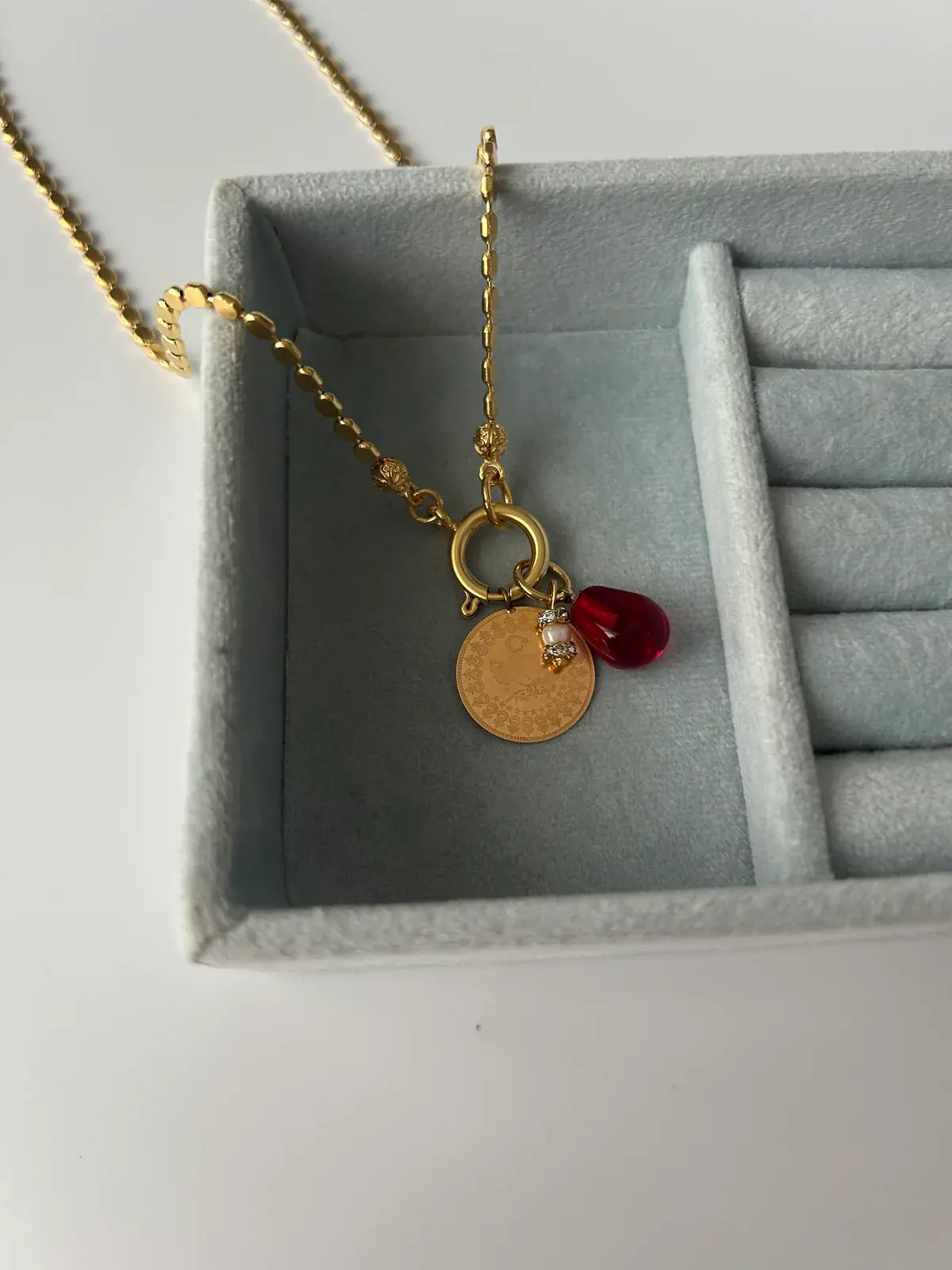 Kullanılmadığı zamanlar da ışıktan uzak ve hava almayan bir kutuda muhafaza ediniz.(Kutuda farklı yapıda diğer takılarınızın olmamasına dikkat ediniz aksi takdirde diğer takılarla birlikte kararma, oksitlenme olabilir.)
