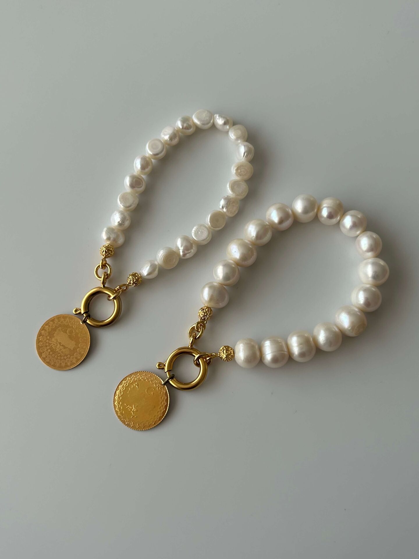Ürünümüz pirinç üzeri altın kaplama olup doğal inciden oluşur.Ürünümüz doğal inciden oluştuğu için boyut ve formlarında minik farklılıklar olabilir.Uzunluğu yaklaşık 16 cm + 2 cm aparat uzunluğu vardır.Dilediğiniz uzunluğu sipariş notunda belirtebilirsiniz.