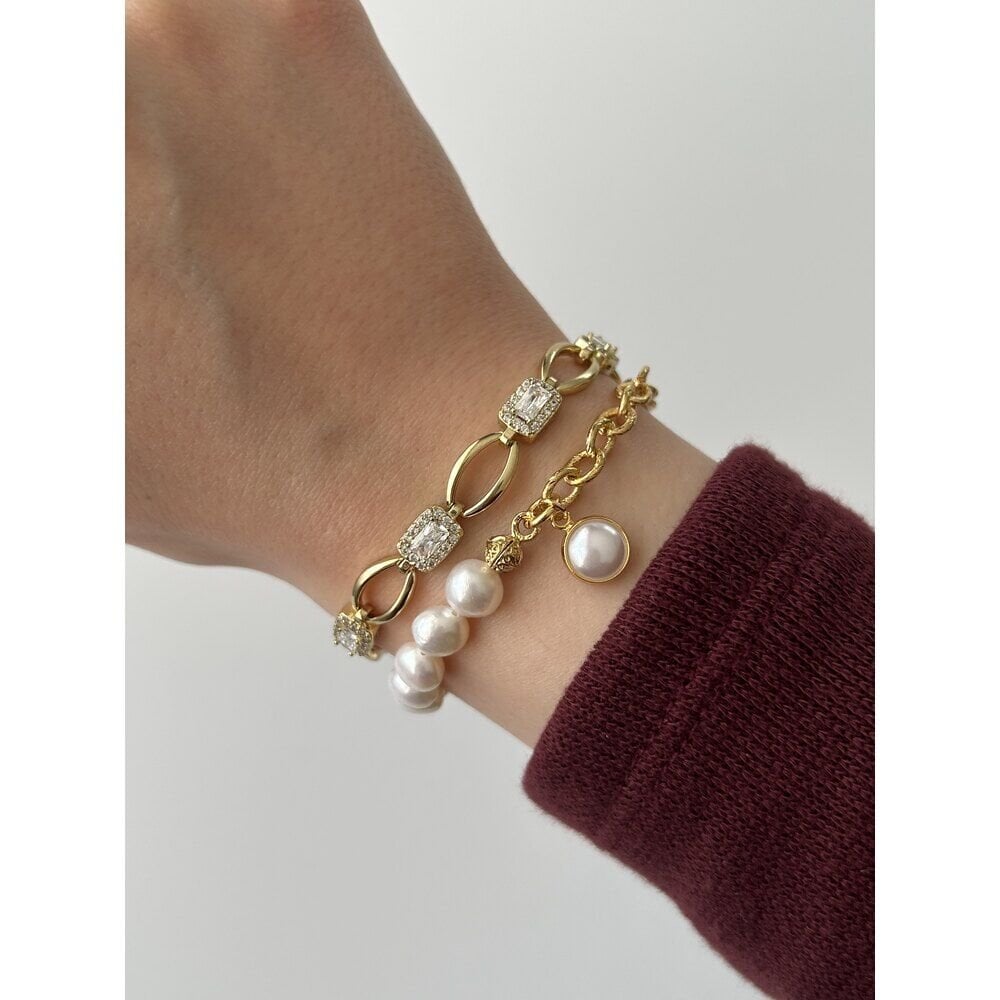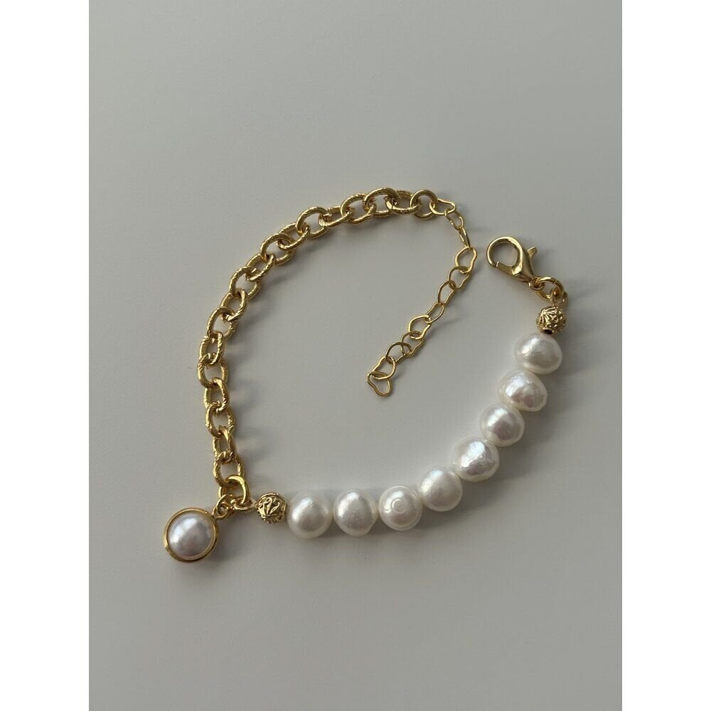 Beyaz Cam Charm İnci/Zincir Bileklik