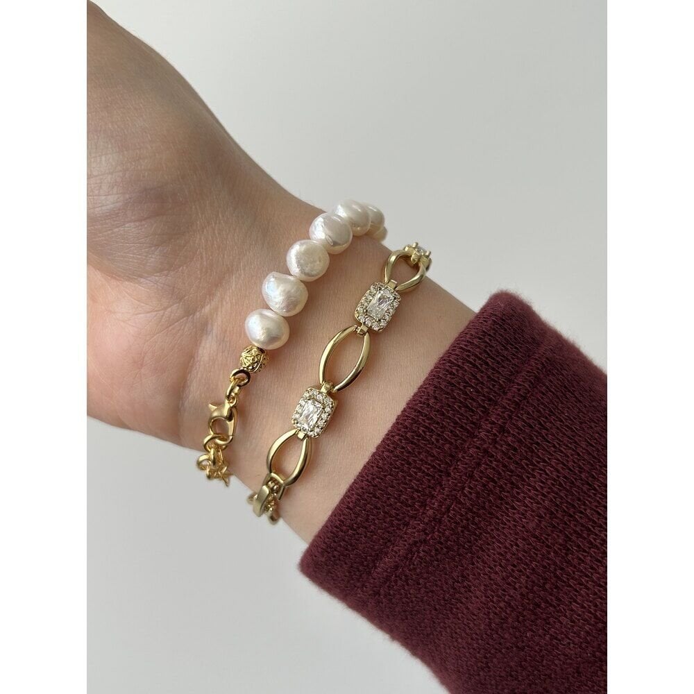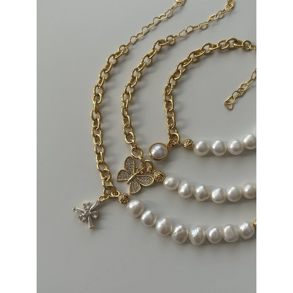 Ürünümüzde bulunan aparatlar pirinç üzeri altın kaplama olup doğal inciden oluşur.Ürünümüz doğal inciden oluştuğu için boyut ve formlarında minik farklılıklar olabilir.Uzunluğu yaklaşık 16 cm + 3 cm uzatma zinciri vardır.Dilediğiniz uzunluğu sipariş notunda belirtebilirsiniz.