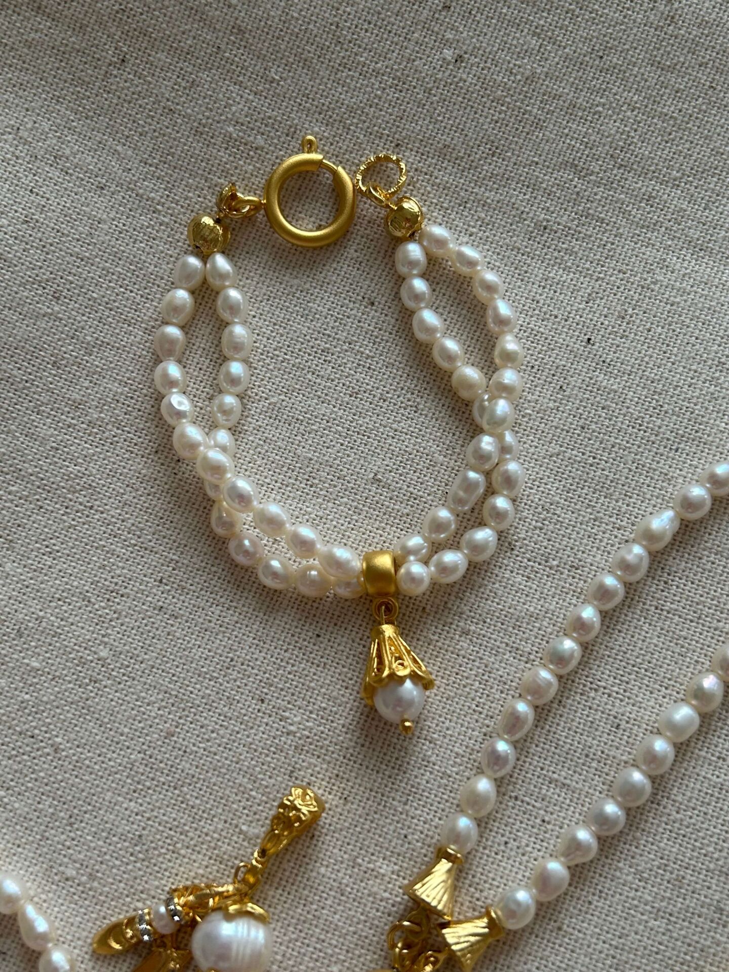 Ürünümüzde bulunan aparatlar pirinç üzeri altın kaplama olup doğal inciden oluşur.Ürünümüz doğal inciden oluştuğu için boyut ve formlarında minik farklılıklar olabilir.Uzunluğu toplam yaklaşık 15 cm + 2 cm aparat uzunluğu vardır.Dilediğiniz uzunluğu sipariş notunda belirtebilirsiniz.
