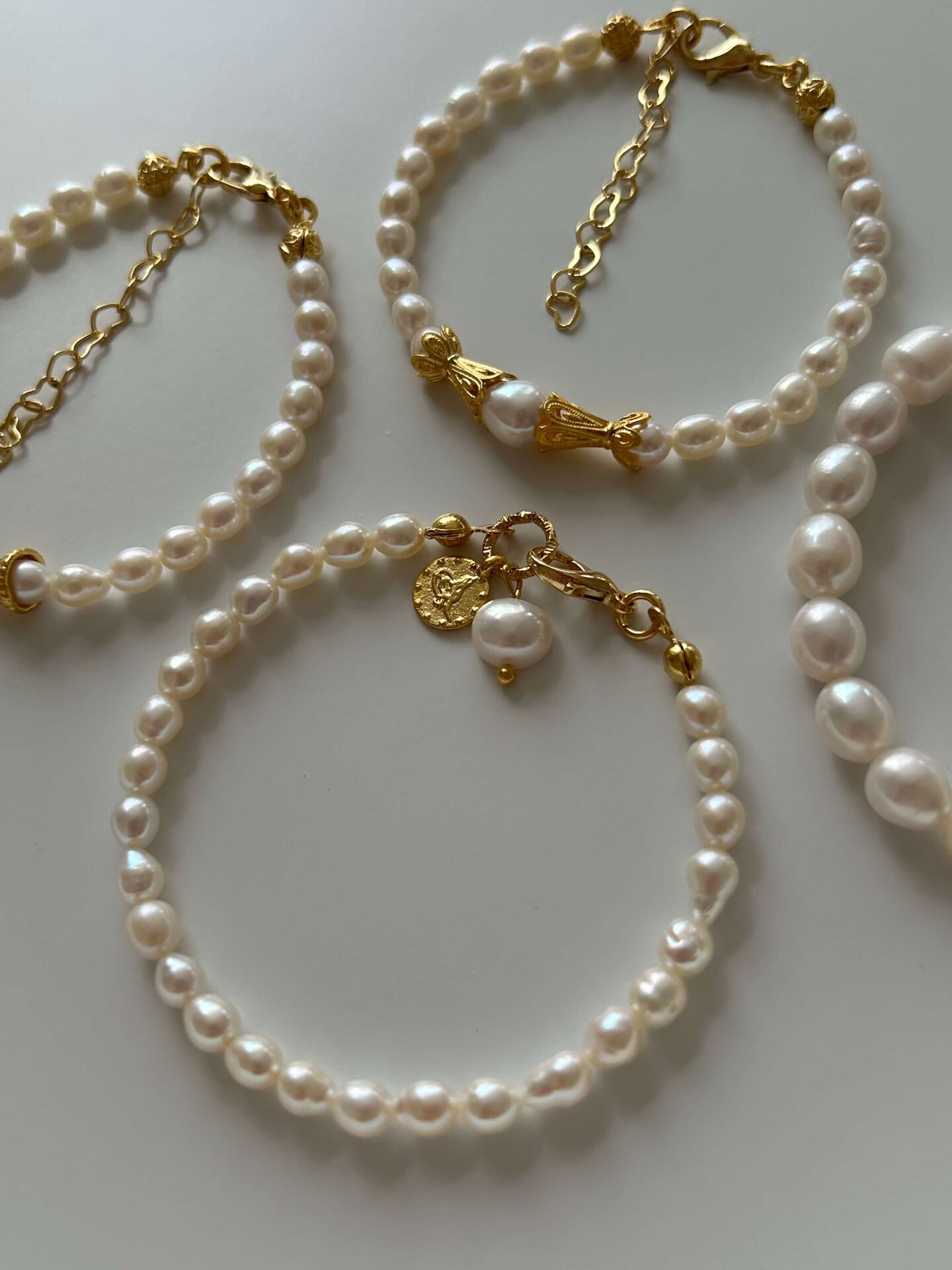 Ürünümüzde bulunan aparatlar pirinç üzeri altın kaplama olup doğal inciden oluşur.Ürünümüz doğal inciden oluştuğu için boyut ve formlarında minik farklılıklar olabilir.Uzunluğu toplam yaklaşık 17,5 cmdir.Dilediğiniz uzunluğu sipariş notunda belirtebilirsiniz.