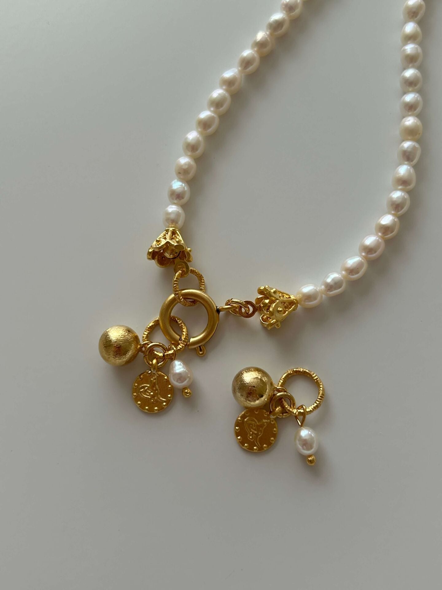Ürünümüzde bulunan aparatlar pirinç üzeri altın kaplama olup doğal inciden oluşur.Ürünümüz doğal inciden oluştuğu için boyut ve formlarında minik farklılıklar olabilir.