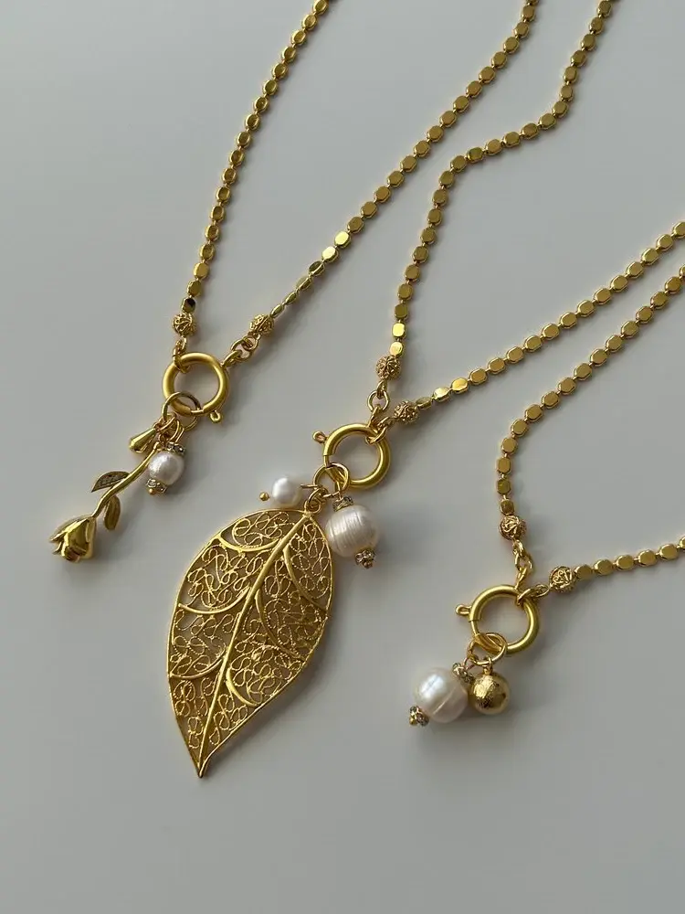 Ürünümüz pirinç üzeri altın kaplama olup doğal inciden oluşur.Ürünümüz doğal inciden oluştuğu için boyut ve formlarında minik farklılıklar olabilir.Uzunluğu 50 cm + 2 cm aparat uzunluğu vardır.