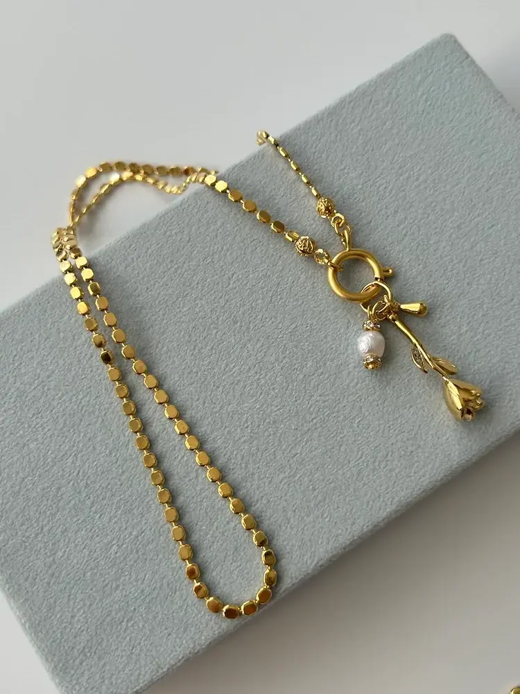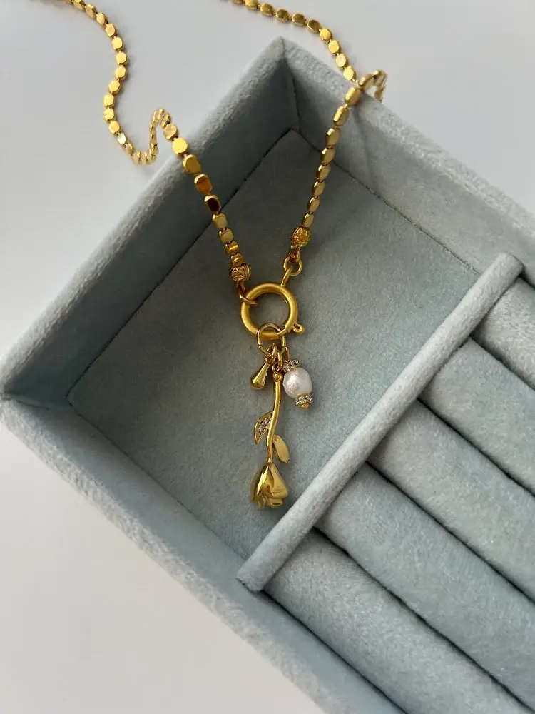 Gül/İnci Charm Zincir Kolye 28PMYW323Y Gül/İnci Charm Zincir Kolye