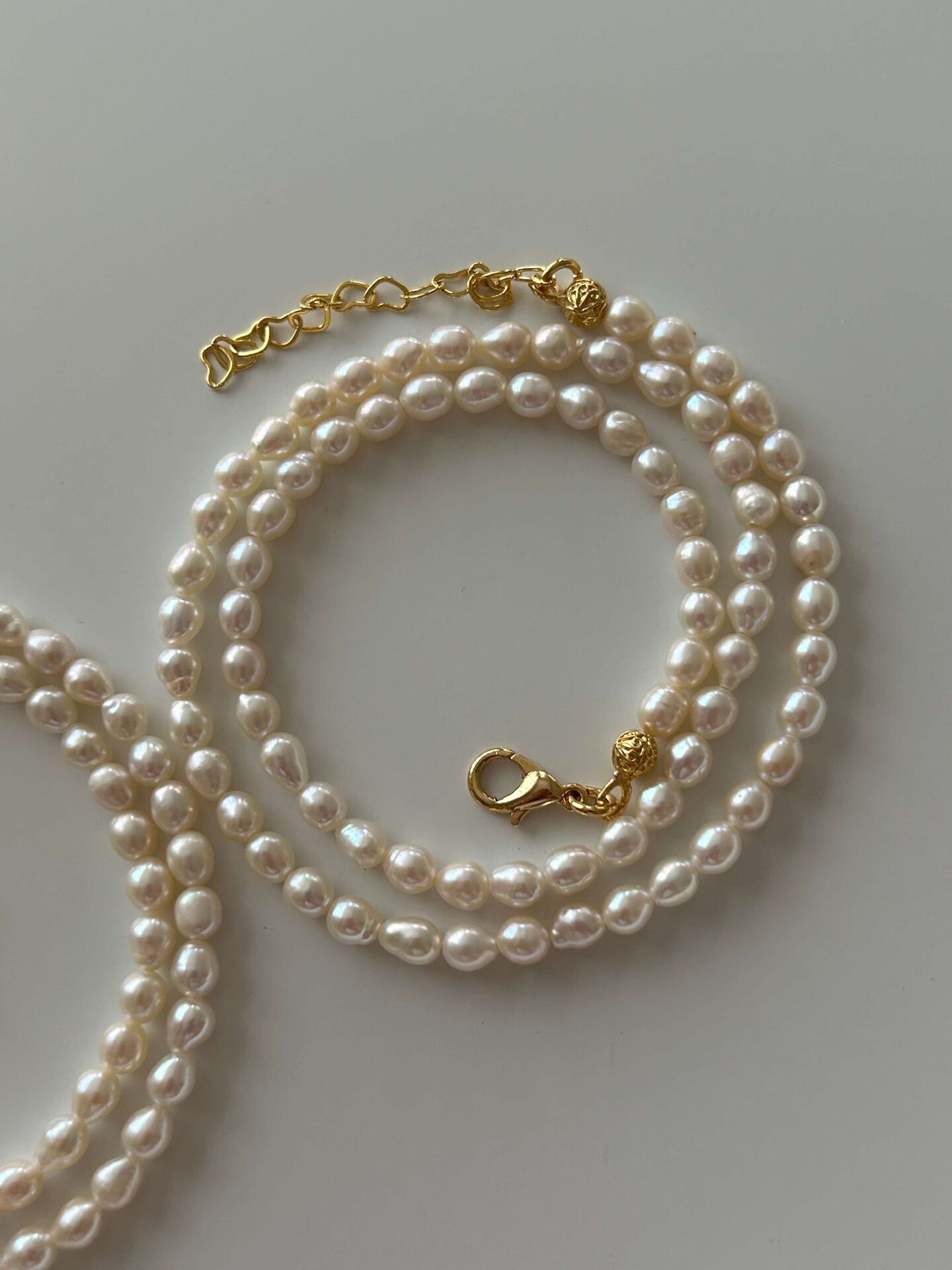 Ürünümüzde bulunan aparatlar pirinç üzeri altın kaplama olup doğal inciden oluşur.Ürünümüz doğal inciden oluştuğu için boyut ve formlarında minik farklılıklar olabilir.Uzunluğu toplam yaklaşık 40 cm + 5 cm uzatma zinciri vardır.