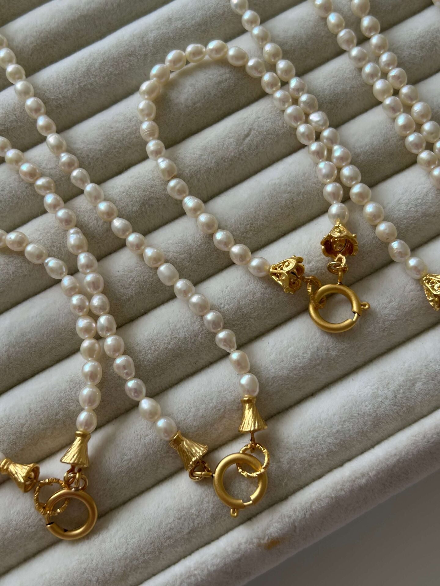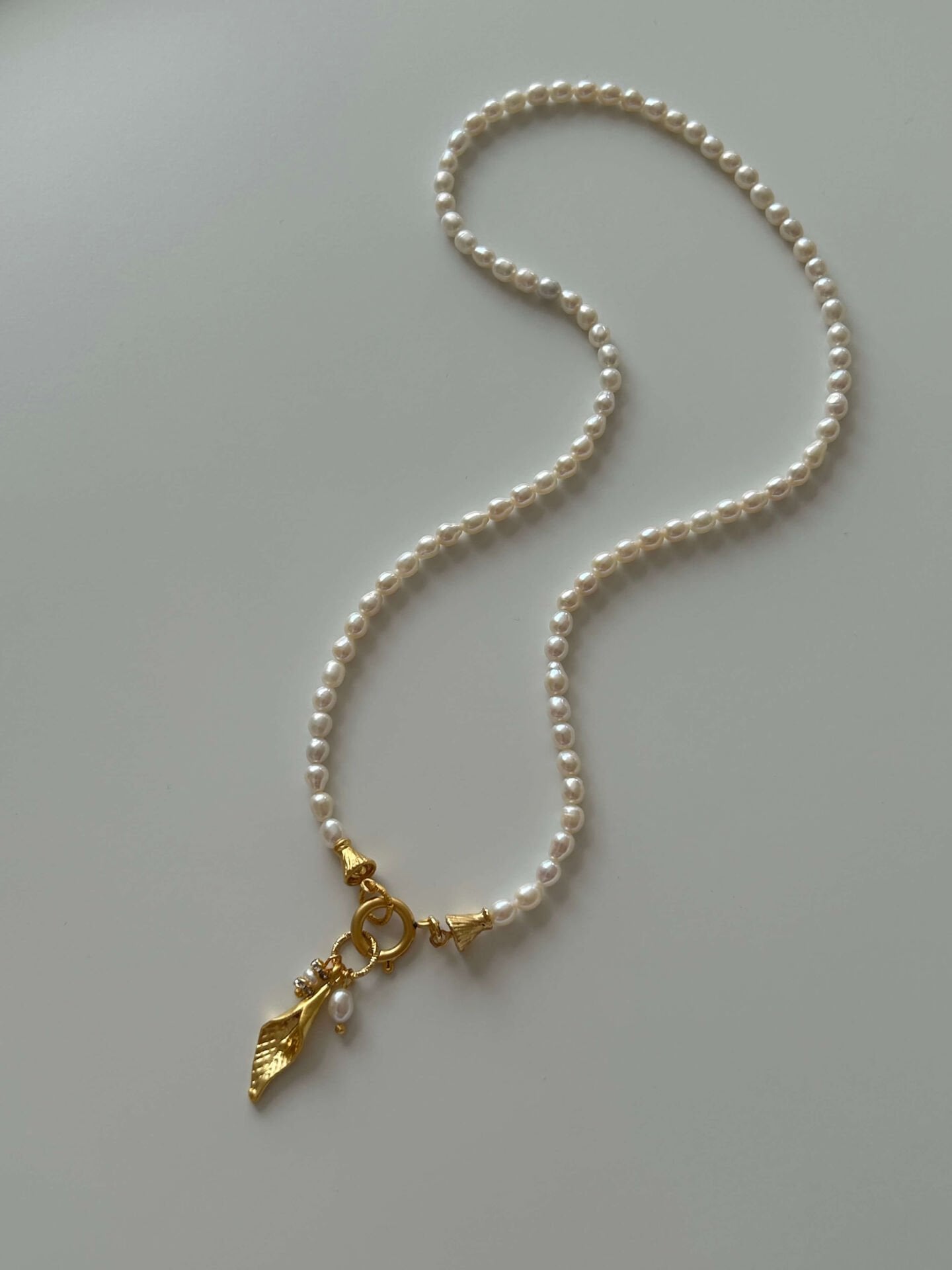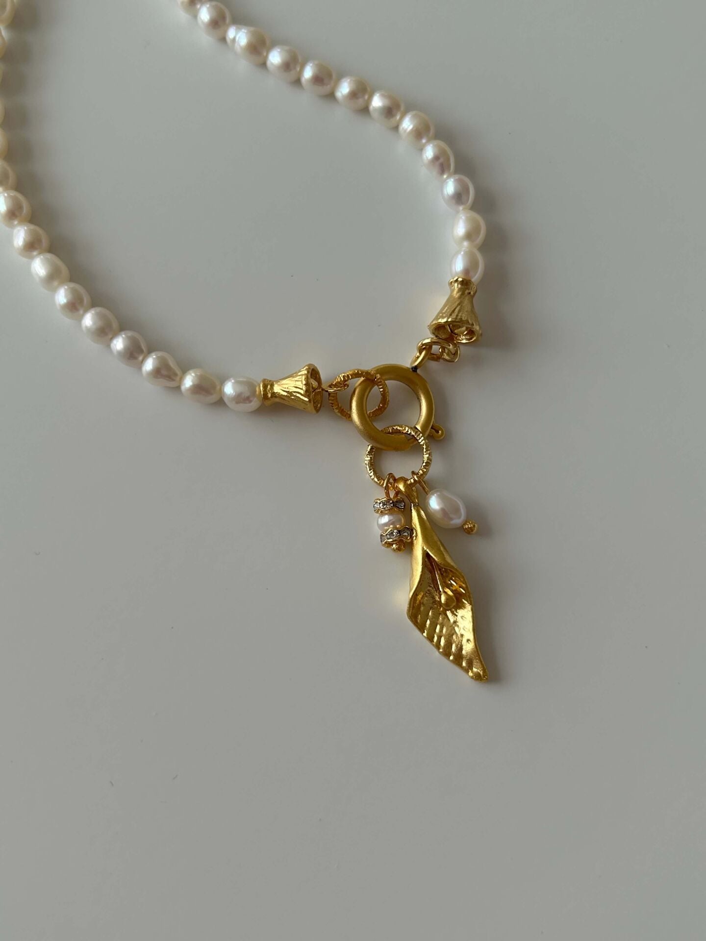 Ürünümüzde bulunan aparatlar pirinç üzeri altın kaplama olup doğal inciden oluşur.Ürünümüz doğal inciden oluştuğu için boyut ve formlarında minik farklılıklar olabilir.Uzunluğu toplam yaklaşık 45-46 cmdir.