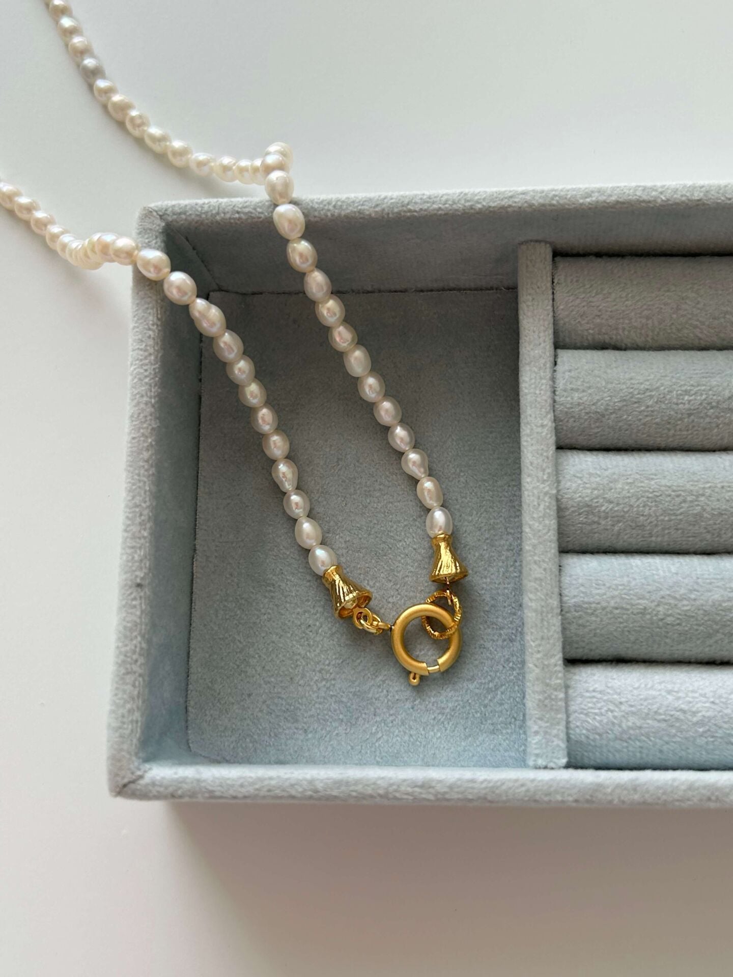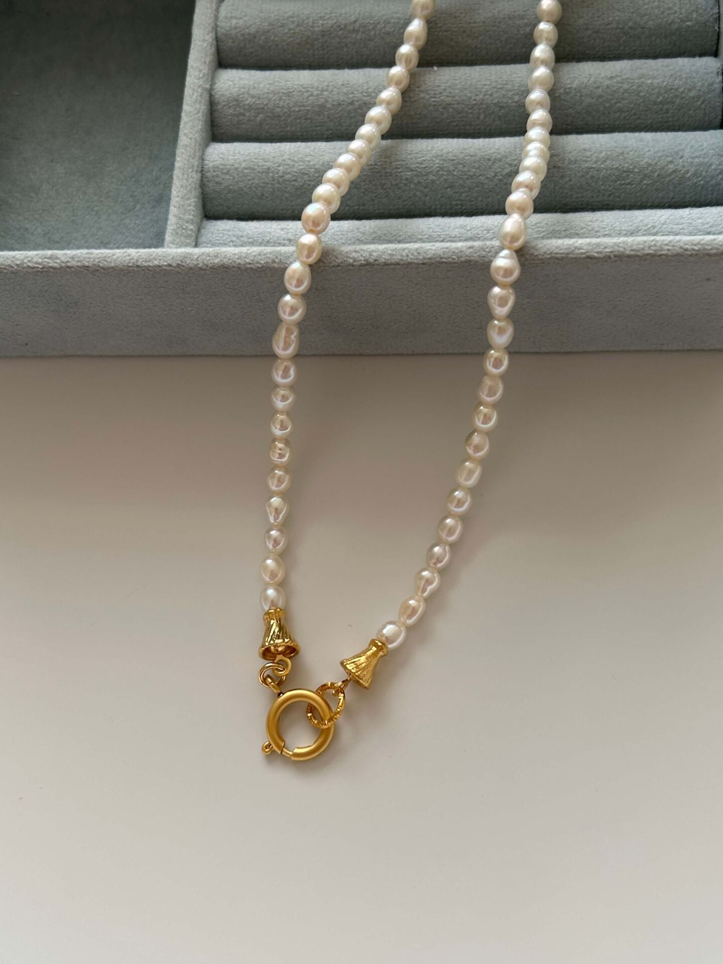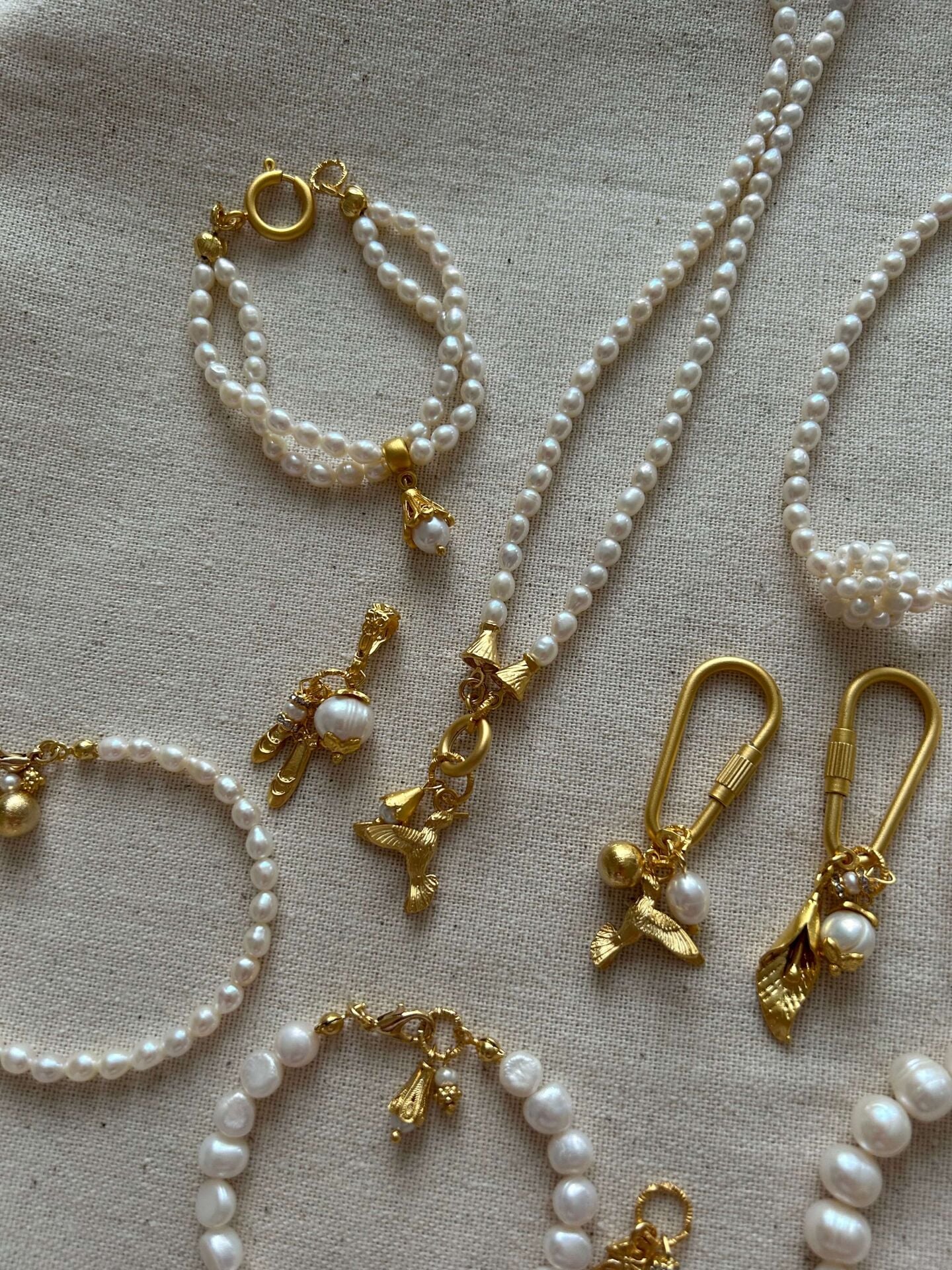 Ürünümüzde bulunan aparatlar pirinç üzeri altın kaplama olup doğal inciden oluşur.Ürünümüz doğal inciden oluştuğu için boyut ve formlarında minik farklılıklar olabilir.Uzunluğu toplam yaklaşık 45-46 cmdir.