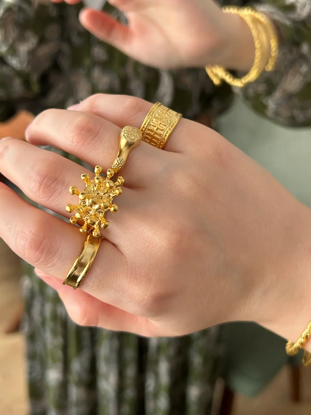Ürünümüz pirinç üzeri mat altın kaplamadır.Standart ölçüde olup herhangi bir parmağa olacak formadadır.Ayarlanabilir formdadır lakin yapısı gereği diğer altın kaplama yüzüklere göre daha sert yapıda olduğu için çok geniş parmaklara ayarlamak mümkün değil bunu dikkate alarak sipariş oluşturabilirsiniz.