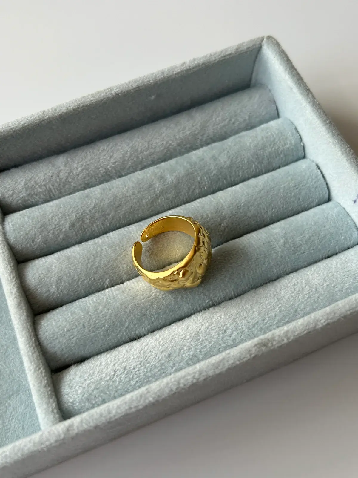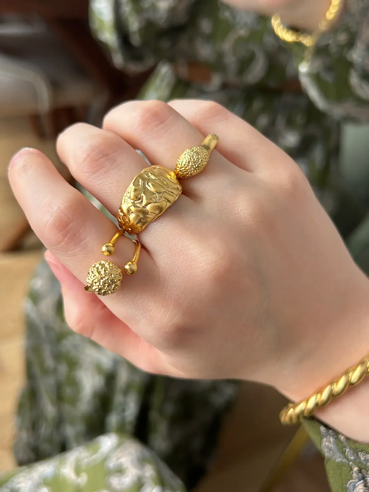 Ürünümüz pirinç üzeri mat altın kaplamadır.Standart ölçüde olup herhangi bir parmağa olacak formadadır.Ayarlanabilir formdadır lakin yapısı gereği diğer altın kaplama yüzüklere göre daha sert yapıda olduğu için çok geniş parmaklara ayarlamak mümkün değil bunu dikkate alarak sipariş oluşturabilirsiniz.