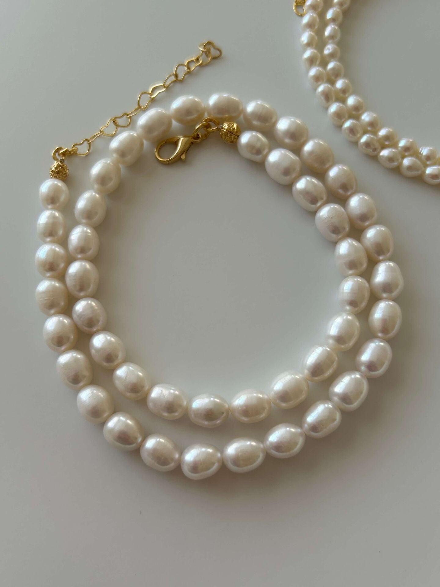 Ürünümüzde bulunan aparatlar pirinç üzeri altın kaplama olup doğal inciden oluşur.Ürünümüz doğal inciden oluştuğu için boyut ve formlarında minik farklılıklar olabilir.Uzunluğu toplam yaklaşık 40 cm + 5 cm uzatma zinciri vardır.