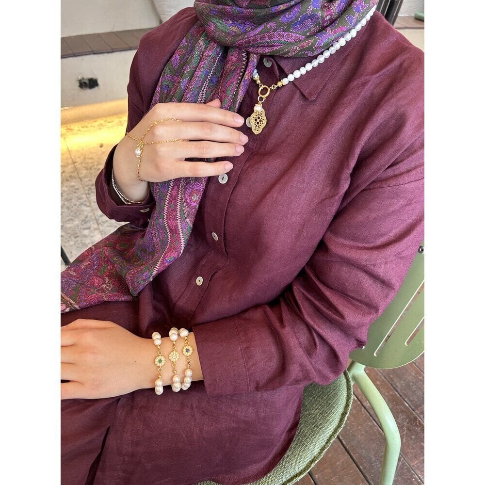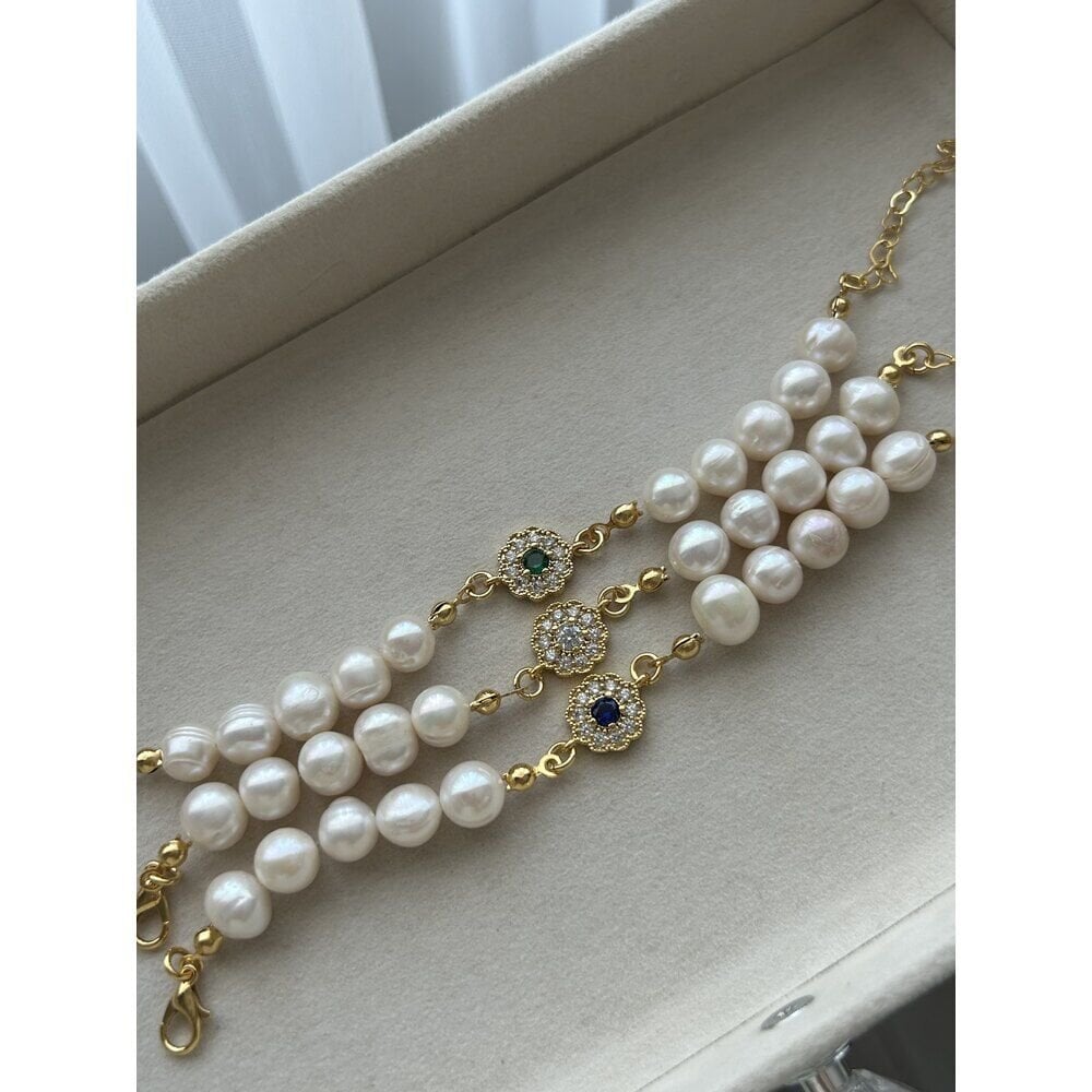 Ürünümüzde bulunan aparatlar pirinç üzeri altın kaplama olup doğal inciden oluşur.Ürünümüz doğal inciden oluştuğu için boyut ve formlarında minik farklılıklar olabilir.Uzunluğu yaklaşık 16 cm + 3 cm uzatma zinciri vardır.Dilediğiniz uzunluğu sipariş notunda belirtebilirsiniz.