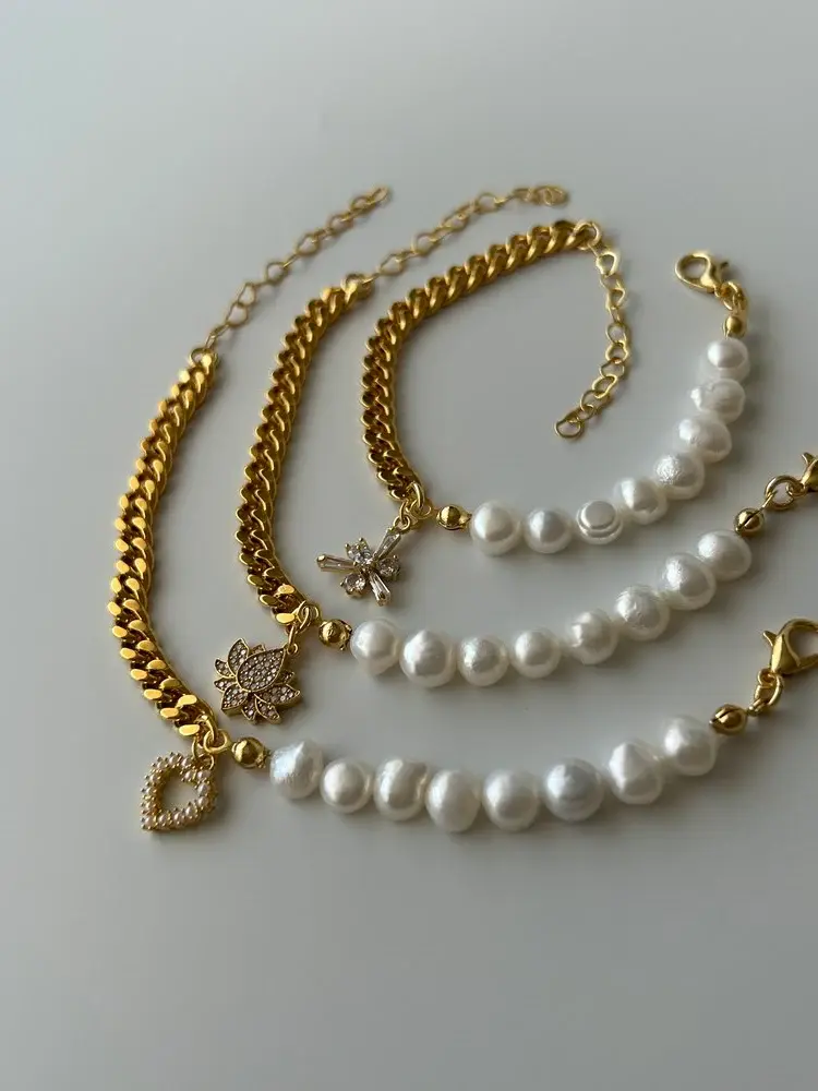 Ürünümüz pirinç üzeri altın kaplama olup doğal inciden oluşur.Ürünümüz doğal inciden oluştuğu için boyut ve formlarında minik farklılıklar olabilir.Uzunluğu yaklaşık 16 cm + 3 cm uzatma zinciri vardır.Dilediğiniz uzunluğu sipariş notunda belirtebilirsiniz.